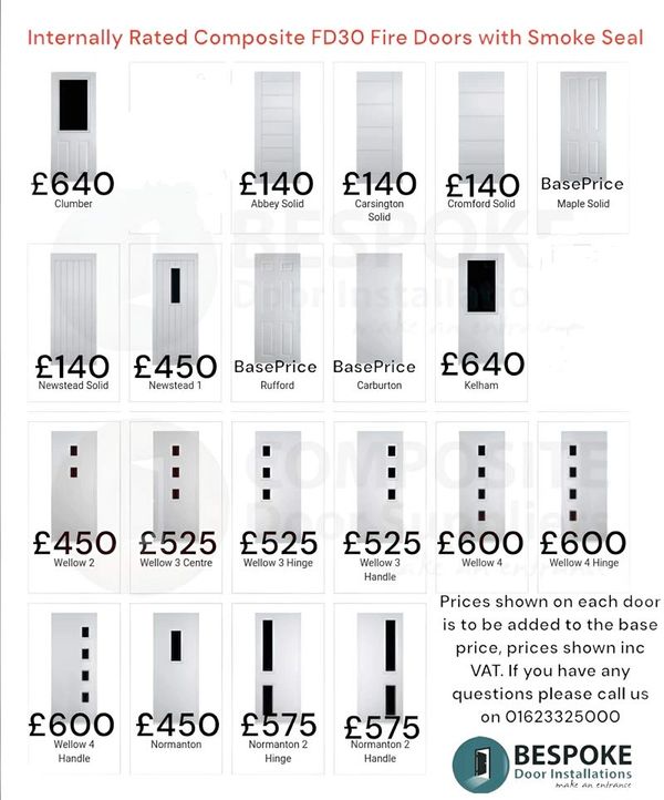 The starting price for an internally rated fire door fitted in a block of flats is £2,000 including fitting and VAT.